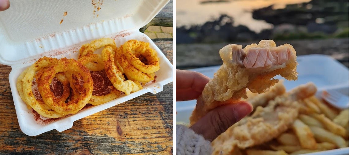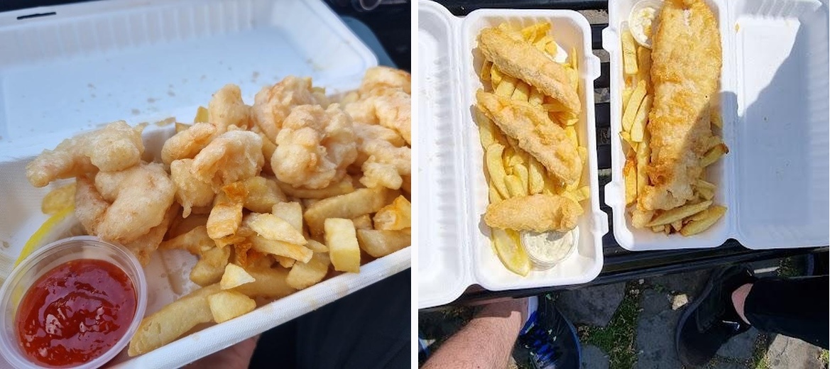 Lovely wee chippy, close to the surrounding beaches, It’s a take away only & can be comfortably accessed with a car, Fish is amazing, Chips are okay